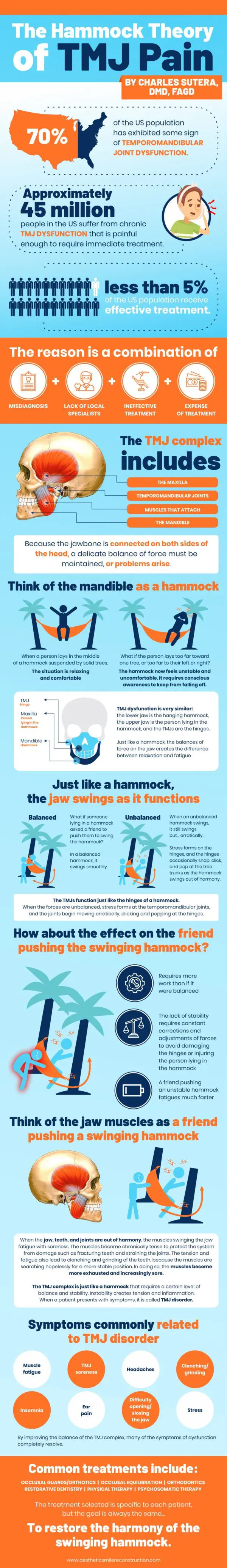 The TMJ complex is just like a hammock that requires a certain level of balance and stability. Instability of the system creates tension and inflammation. That leads to a variety of diverse symptoms that often can even feel unrelated to one another.